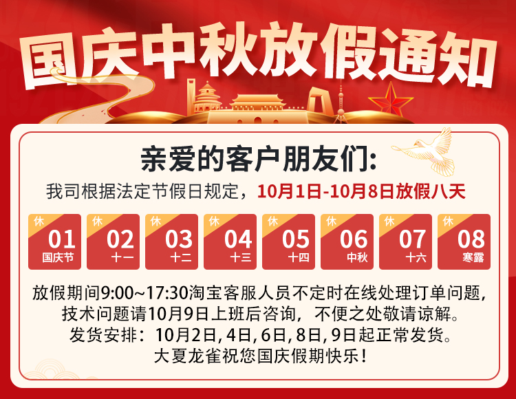 大夏龙雀2025国庆放假通知